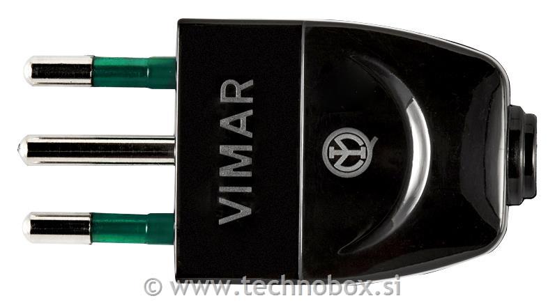 2P+E 10 A 250 V~ vtič SICURY, italijanski standard S11, aksialni kabelski vhod, črn