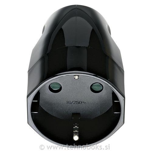 Prenosna 2P+E 16 A 250 V~ vtičnica SICURY, nemški standard, aksialni kabelski vhod, črna