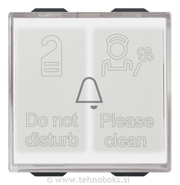1P NO 10 A 250 V~ tipkalo z dvema pilotnima lučkama za hotel Ne moti in prosim očisti 230V~, bela - 2 modula