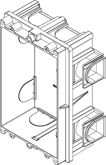 Montažna škatla za vhodne plošče za 1 modul, opremljena s pokrovom proti malti in distančnikom za vgradnjo v banke, svetlo modra. Dimenzije 94x143x50 mm