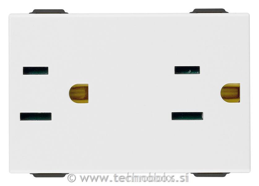 Vtičnica dvojna 2P+E15A USA bela