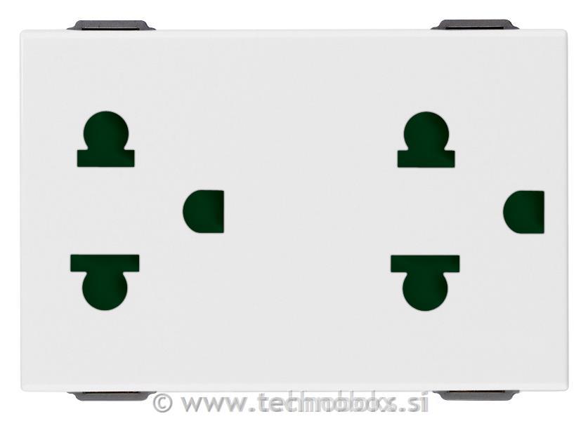 Dvojna vtičnica 2P+E 16 A 250 V~ SICURY, polarizirani evro-ameriški standard, bela - 3 moduli