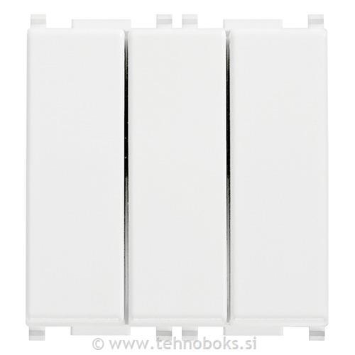 Tri 2-smerna stikala 1P 20 AX 250 V~, bela - 2 modula. Največ 250 W za sijalke z lastno predstikalno napravo (IEC 60669-1:2017)