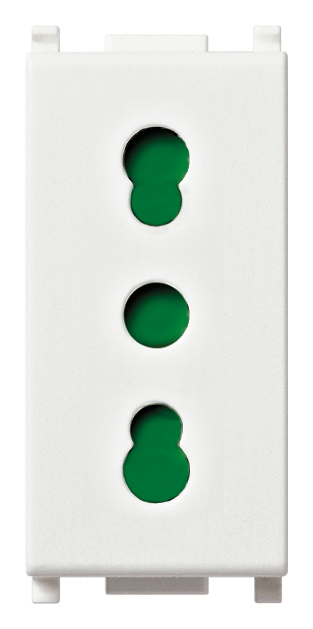 Vtičnica euro 2P, velikosti 1M, bele barve iz programa Vimar Plana ima vijačno pritrditev vodnikov 1.5-2.5mm2.