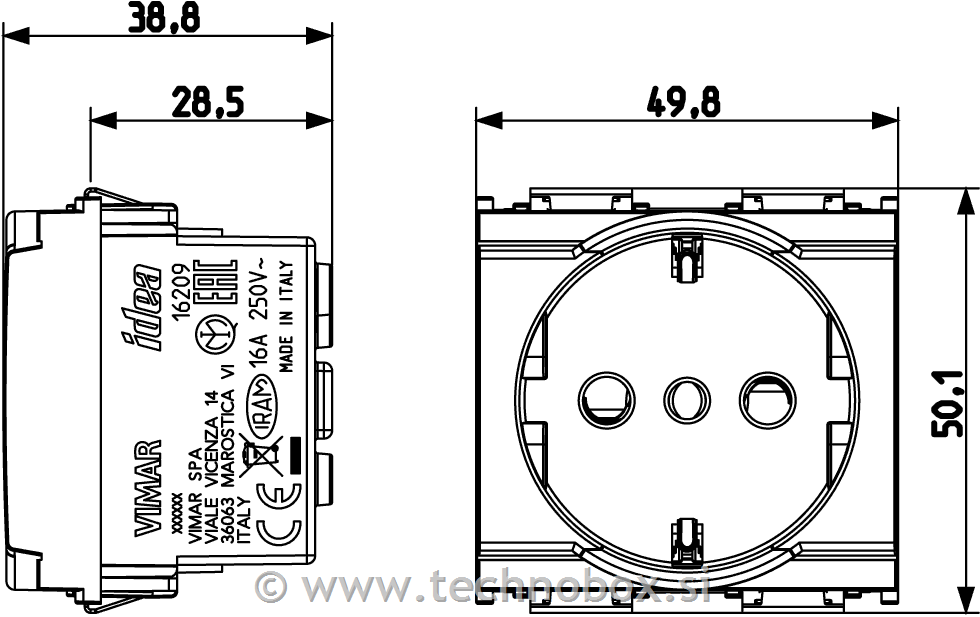 2P+E 16 A 250 V~ vtičnica SICURY, italijanski standard P30 (bočni in osrednji ozemljitveni kontakt), siva - 2 modula