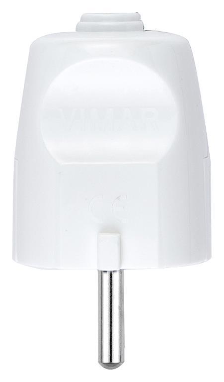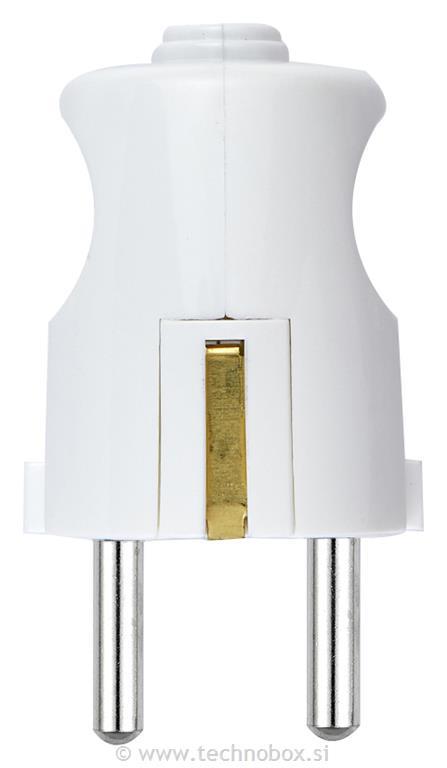 Prenosni 2P+E 16 A 250 V~ vtič, nemški/francoski standardi, aksialni kabelski vhod, bela