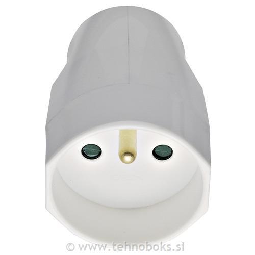 Prenosna 2P+E 16 A 250 V~ vtičnica SICURY, francoski standard, aksialni kabelski vhod, bela