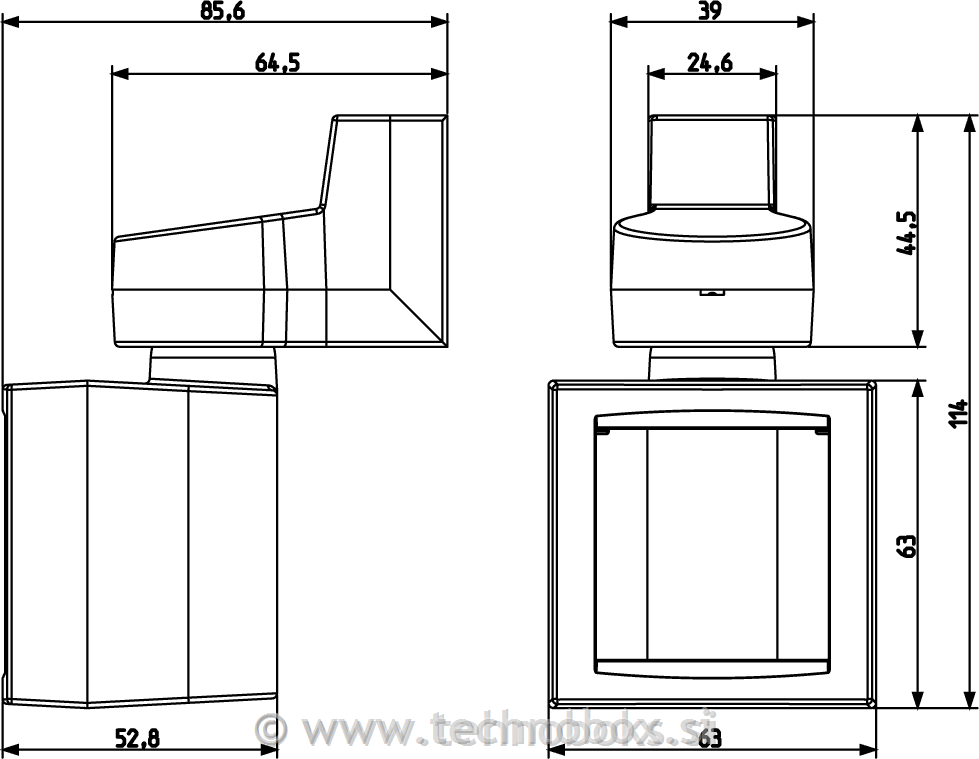 2-modulna vrtljiva doza za Eikon, Arké in Plana, srebrna
