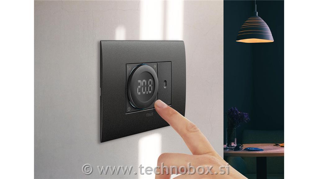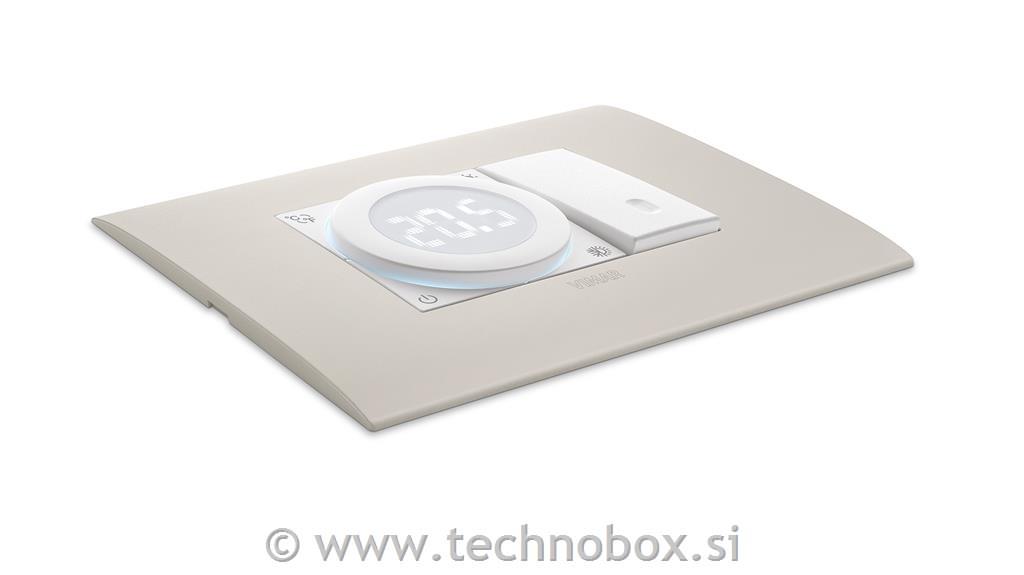 Termostat na številčnici z relejnim izhodom 5(2) A 240 V~, tehnologija IoT na tehnologiji Bluetooth 5.0 standard za ustvarjanje mrežnega sistema View Wireless, 1 vhod za zunanji temperaturni senzor, napajanje 100-240 V~ 50/60 Hz, ogrevanje in klimatska naprava v načinu ON/OFF in PID, naprava za nadzor temperature razreda I (prispevek 1%) v načinu ON/OFF, razred IV (prispevek 2%) v načinu PID, bela LED osvetlitev ozadja z nadzorom svetlosti, 100-240 V 50 /60 Hz napajalnik, bela - 2 modula. Za dopolnitev s pokrivnimi ploščami Eikon, Arké in Plana, za Idea z namenskim montažnim okvirjem 16723