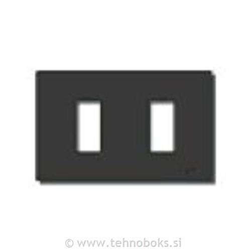2-modulni pokrivni okvir za 3-modulne podometne doze, eloksiran aluminij, zaskočna pritrditev, črn. Za montažni nosilec 08531