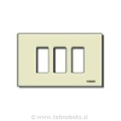 3-modulni pokrivni okvir za 3-modulne podometne doze, eloksiran aluminij, zaskočna pritrditev, bež. Za montažni nosilec 08531