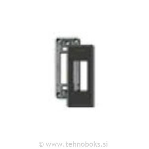 1-modulni pokrivni okvir za montažo na ploščo, eloksiran aluminij, zaskočna pritrditev, črn. Opremljen z montažnim nosilcem