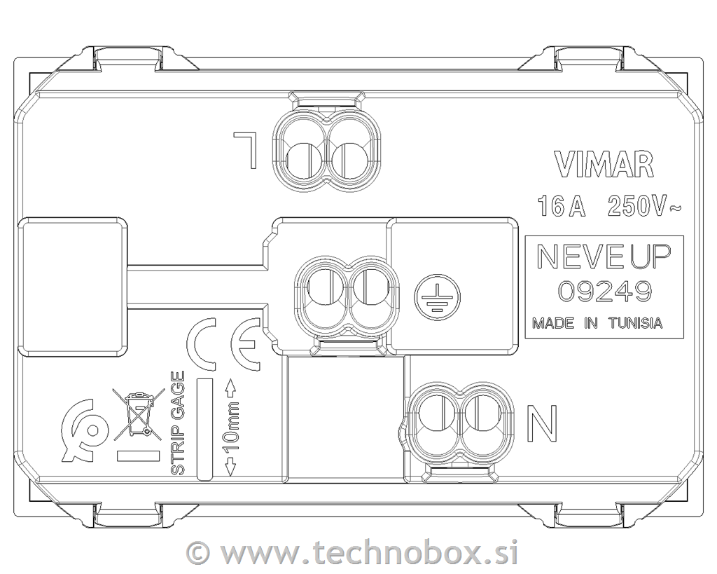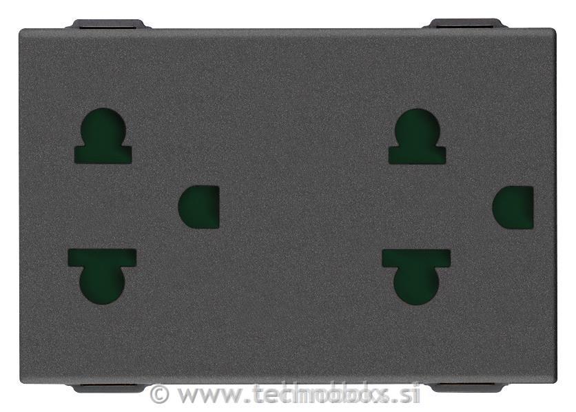 Dvojna vtičnica 2P+E 16 A 250 V~ SICURY, polarizirani evro-ameriški standard, karbonski mat - 3 moduli