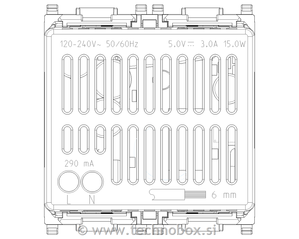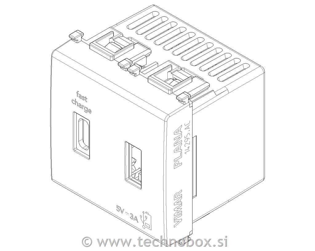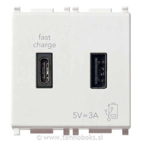 5 V 3 A USB napajalna enota za elektronske naprave, A-USB in C-USB vhod, ki zagotavljajo skupno 3 A za polnjenje naprave do 3 A (npr. tablica) ali hkrati dveh naprav (npr. tablica, pametni telefon), napajalna napetost 120-240 V~ 50/60 Hz<(>,<)> bela - 2 modula