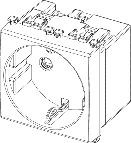 Vtičnica šuko, velikosti 2M, bele barve iz programa Vimar ARKE ima vijačno pritrditev vodnikov 1.5-2.5mm2.