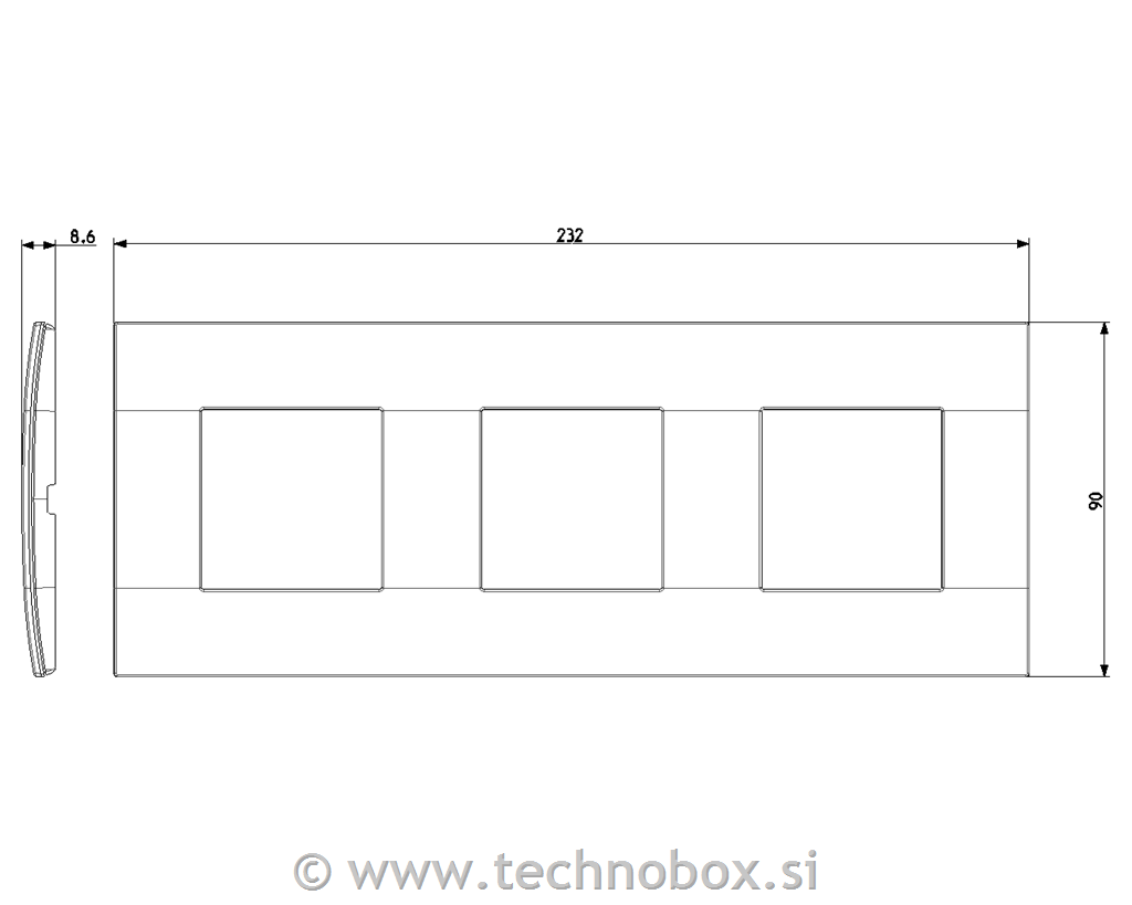 Klasična 6-modulna pokrivna plošča (2+2+2, razdalja med središči 71 mm), kovina, mat titan