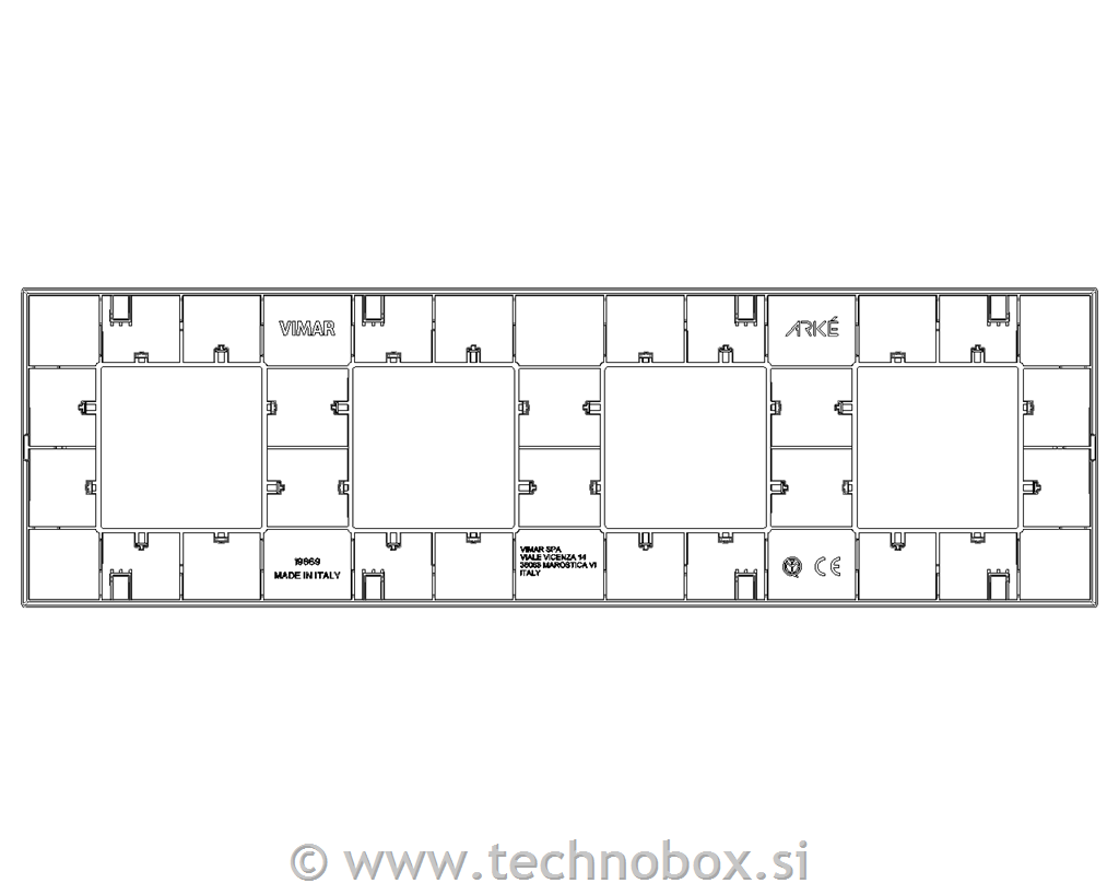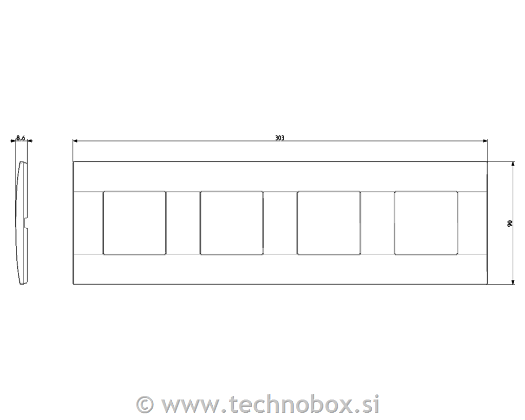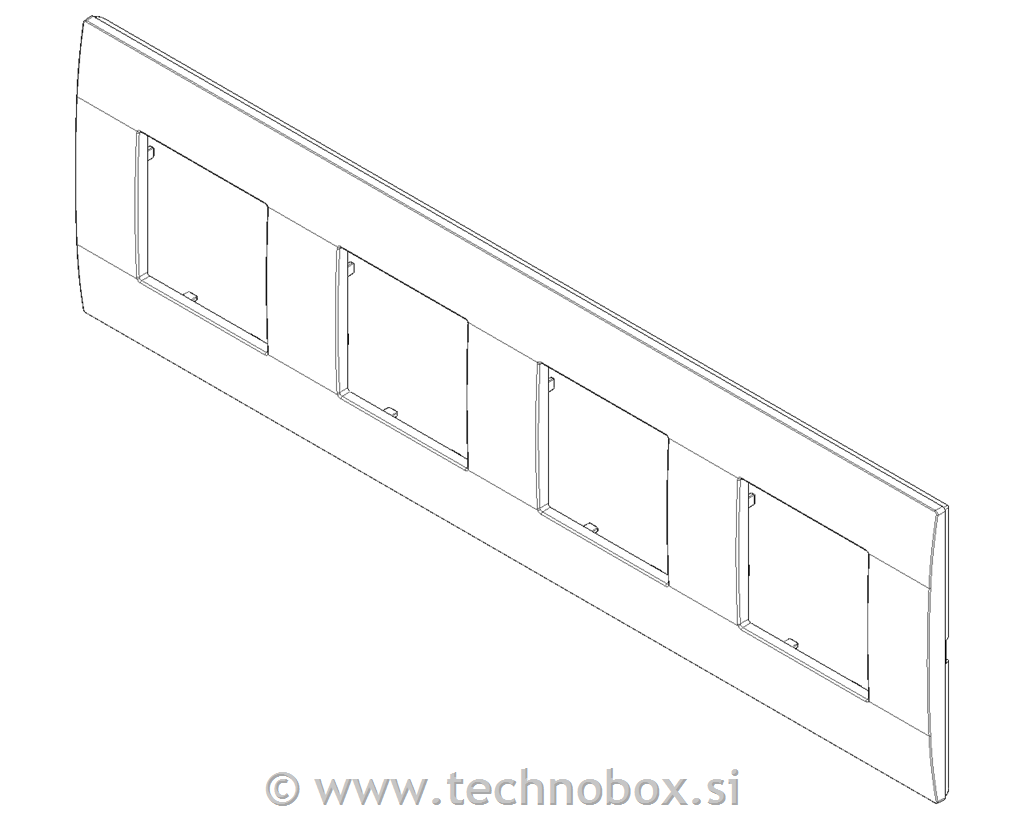 Klasična 8-modulna pokrivna plošča (2+2+2+2, razdalja med središči 71 mm), tehnopolimer, črna
