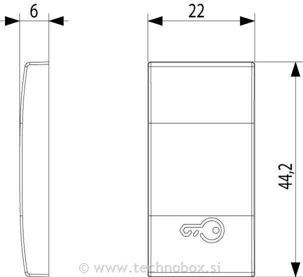 Zamenljiv gumb z 1 modulom, simbol ključa, ki se osvetli