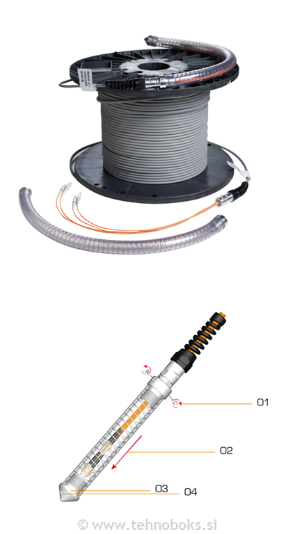 ojačana s termoplastičnim materialom premera 32 mm, katere dolžina se spreminja glede na število vlaken v kablu.