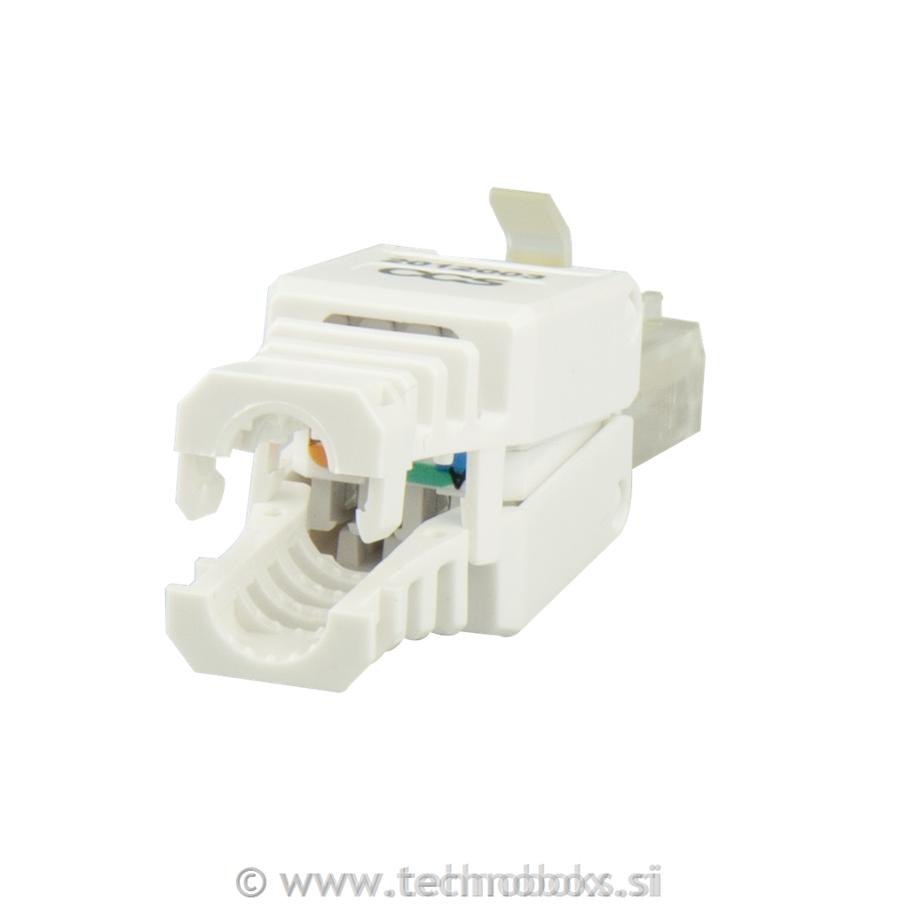 Neoklopljeni vtič CCS kategorije 5E, primeren za priključitev kablov s polnimi vodniki. S sistemom zaključkov Easy Crimp, ki ne zahteva uporabe orodja, je povezava vedno enostavna, hitra in učinkovita. Lastnosti izpolnjujejo zahteve razreda D Cat.5E v skladu s standardi ISO / IEC 11801 in ANSI / TIA 568.2-D