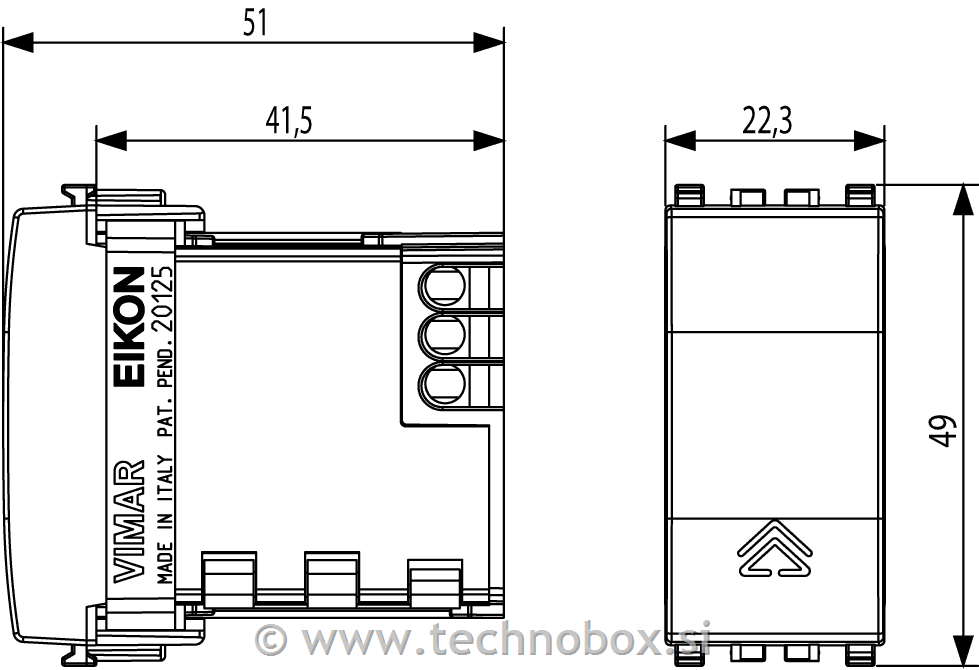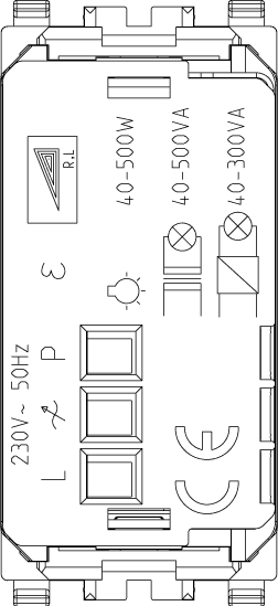 Zatemnilnik, napajalna napetost 230 V~ 50 Hz, za: žarnice z žarilno nitko 40-500 W, feromagnetne transformatorje 40-500 VA in elektronske transformatorje z induktivnim odzivom 40-300 VA, krmiljenje in regulacija z vgrajenim senzorjem na dotik ali z obrobnimi tipkami NO, funkcija MASTER, MOSFET+TRIAC tehnologija, vidna v temi, bela. Ni primerno za namestitev v ohišja Isoset