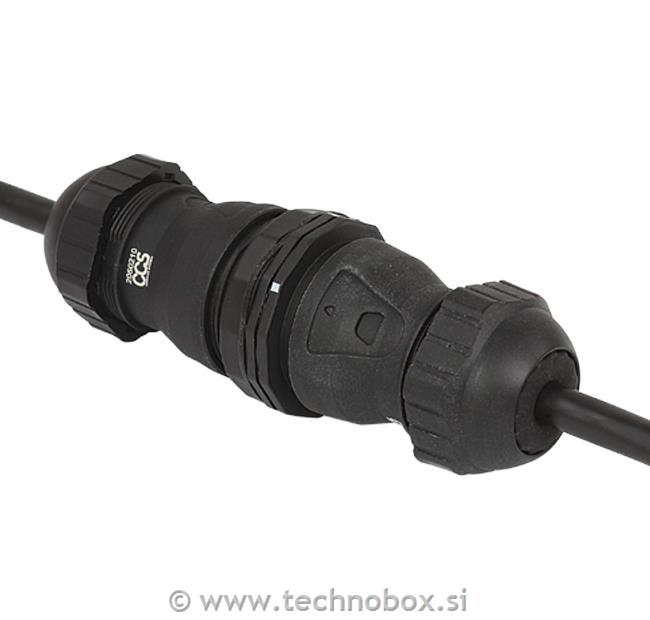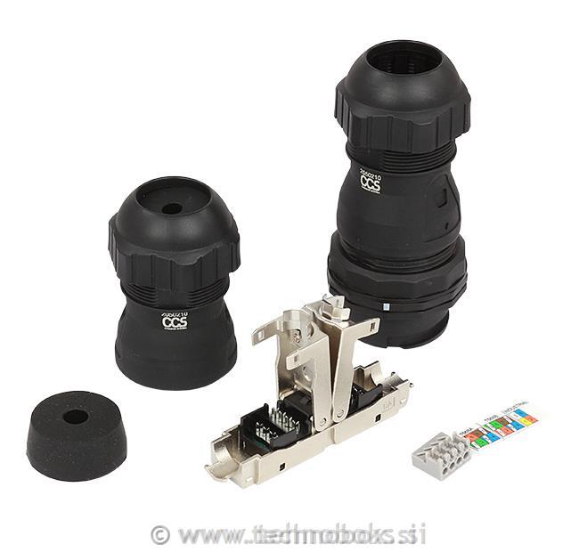 Zaščiten linijski spoj CCS Easy Crimp IP68 kategorije 6A, idealen za razširitev obstoječih bakrenih povezav v okoljih, kjer je potrebna visoka stopnja zaščite. Sistem zaključevanja ne zahteva uporabe orodja, zaradi česar je povezava hitra in enostavna. Izpolnjuje zahteve razreda EA Cat.6A v skladu s standardi ISO / IEC 11801, EN 50173 in ANSI / TIA 568.2-D.