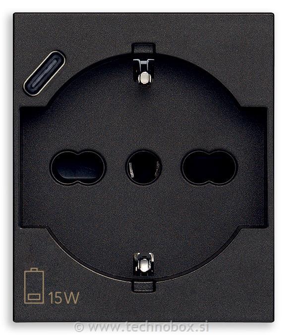 Vtičnica šuko 2P+E 16A 2M črna LINEA+USB