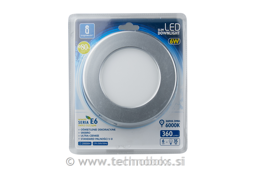 Svetilka LED vgradna 6W 6000K srebrn rob