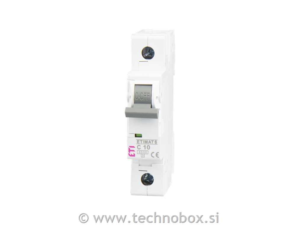 Avtomatska varovalka z nazivno karakteristično zmogljivostjo 6kA (Etimat 6).