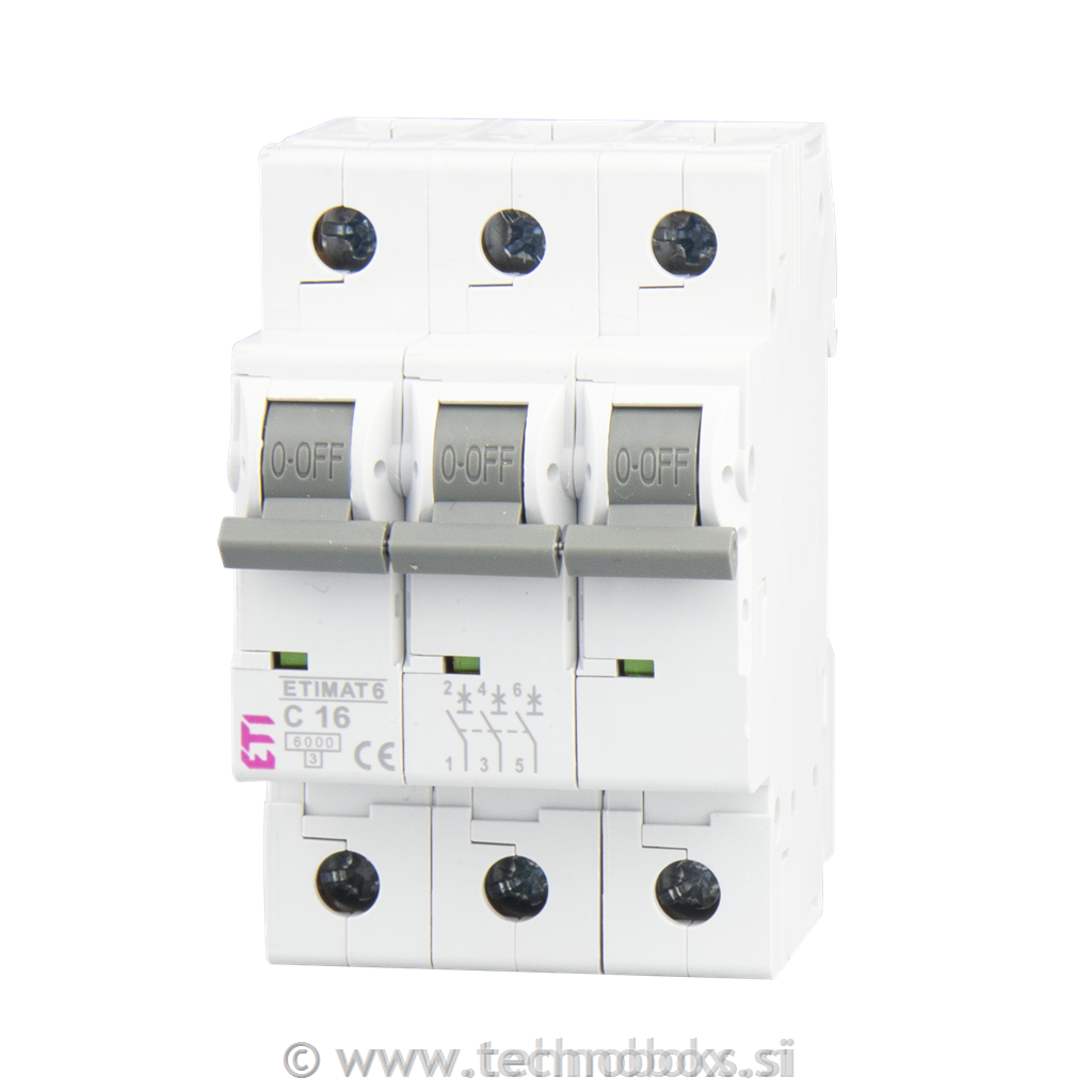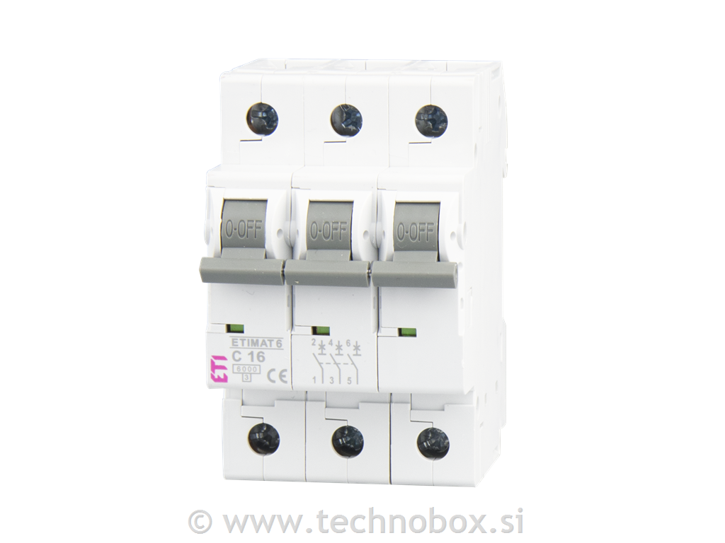 Avtomatska varovalka z nazivno karakteristično zmogljivostjo 6kA (Etimat 6).