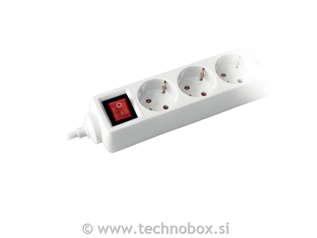 Podaljšek s tremi vtičnicami, s stikalom in petimi metri kabla.