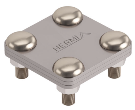 Sponka, sestavljena iz 3 ploščic dimenzij 58 x 68 mm in 4 vijakov ter matic M8,