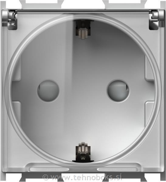 Vtičnica modul šuko 250V s pokr.sreb-pro