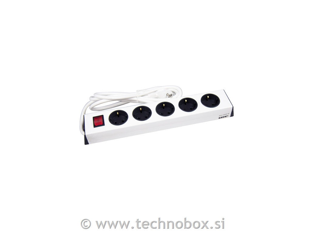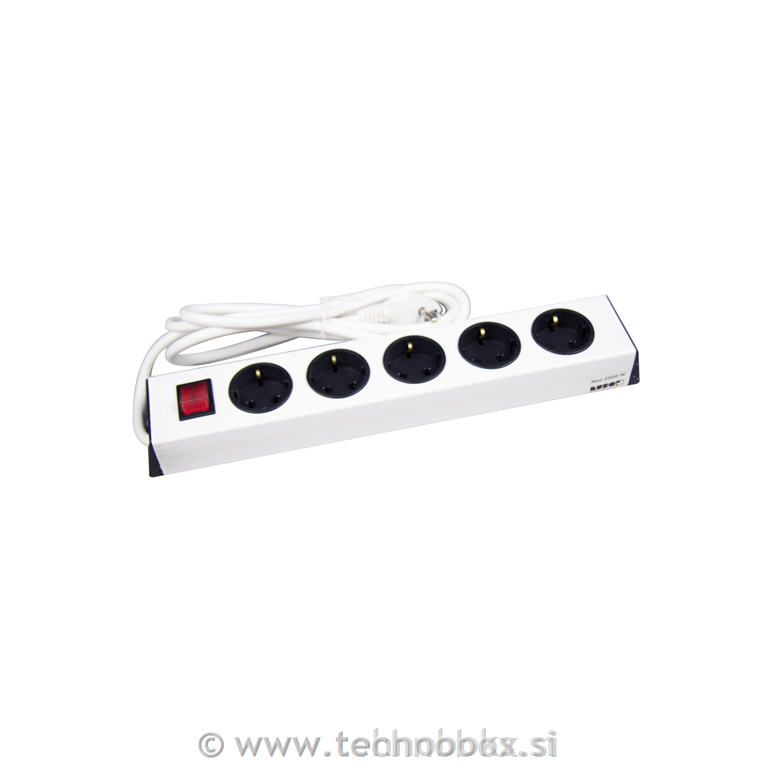 Kabelski podaljšek ima 5 šuko vtičnice in stikalo.