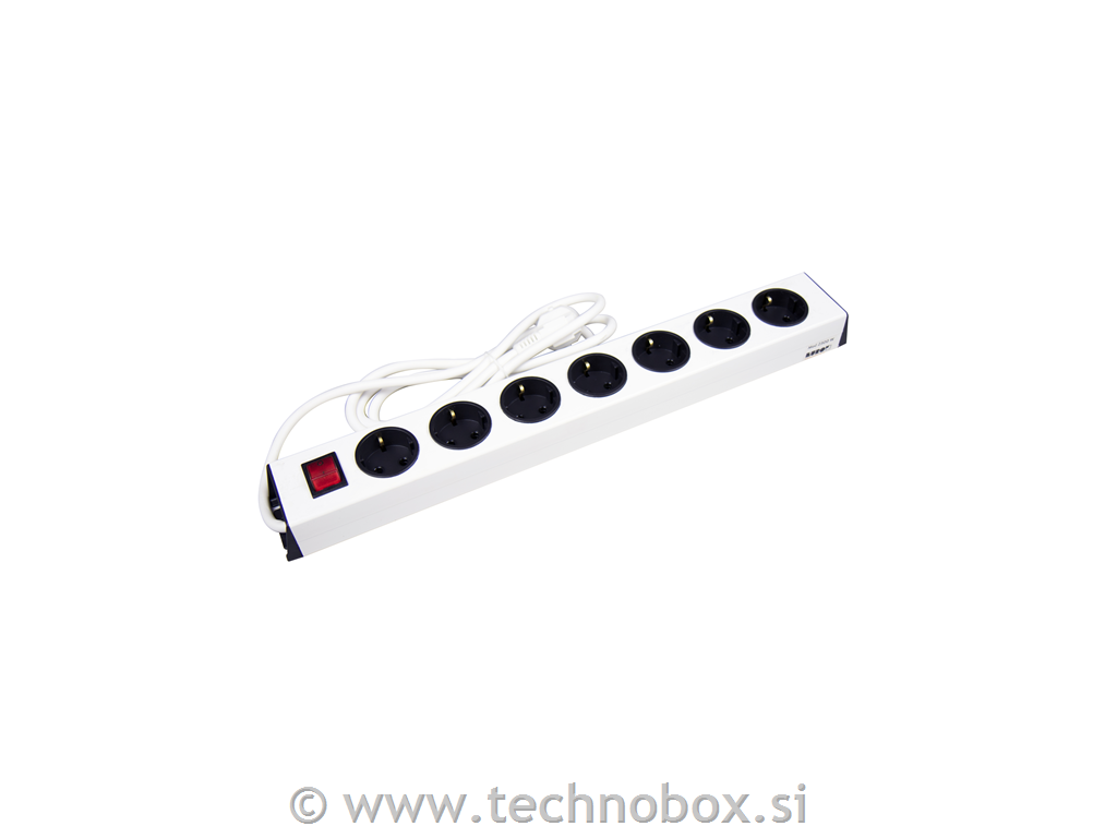 Kabelski podaljšek ima 7 šuko vtičnice in stikalo.
