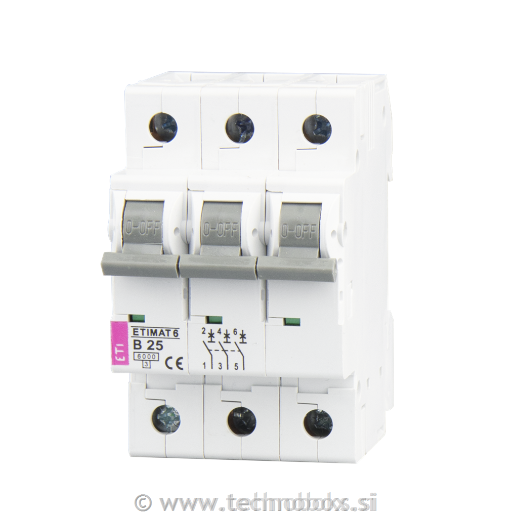 Avtomatska varovalka z nazivno karakteristično zmogljivostjo 6kA (Etimat 6).