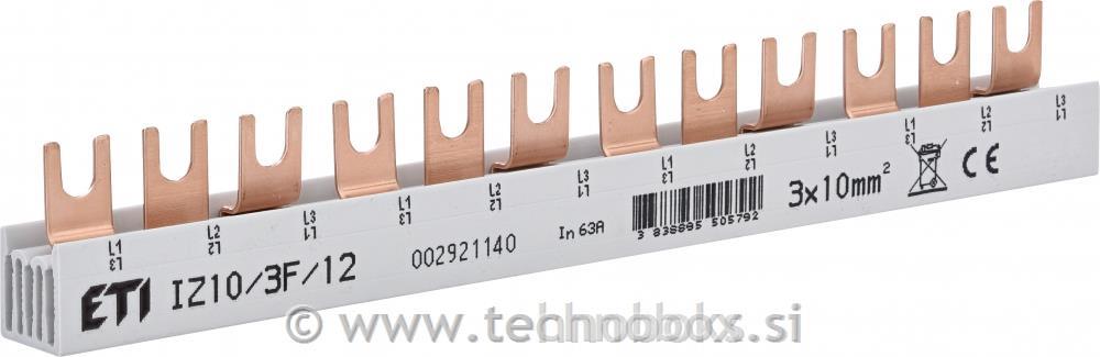 Povezovalna zbiralka DIDO trifazna za 12 modulov, viličaste oblike, nazivnega toka 63A.
