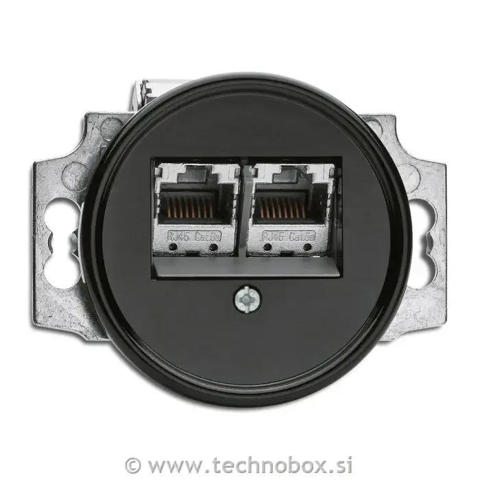 Vtičnica p/o 2xRJ45 Cat.6a Bakelit črna