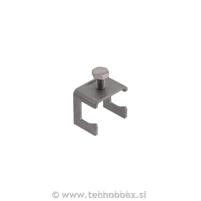 KON09 sponka, sestavljena iz ploščice dimenzije 50 mm x 35 mm x 45 mm in vijaka M10,
