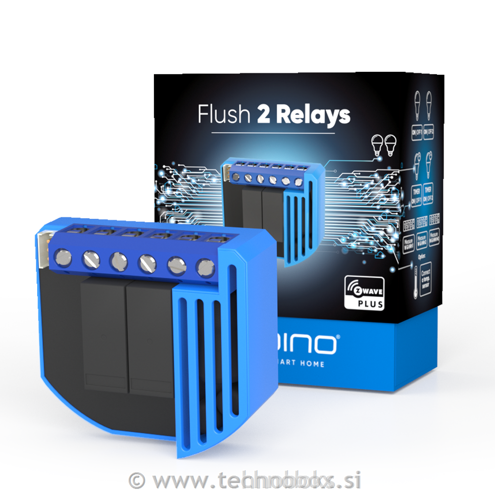 Qubino Flush 2 Relays je brezžična naprava za pametni dom, ki pretvori vaše običajno dvopolno stensko stikalo v pametno stikalo. Idealen je za daljinsko upravljanje dveh električnih naprav ali dveh skupin naprav – luči, stropnega ventilatorja, IR panela, infrardečega grelnika, grelnika vode itd. Namestitev je hitra in enostavna, za obstoječim stenskim stikalom. Zaradi majhnosti se prilega v najmanjše, najbolj plitve in najbolj natrpane električne omarice, polne žic. Deluje na tehnologiji Z-Wave in podpira samodejno vklop za hitro nastavitev. Meri porabo energije (W & kWh) in ima možnost dodajanja temperaturnega senzorja za ustvarjanje bolj zapletenih scenarijev glede na sobno temperaturo.