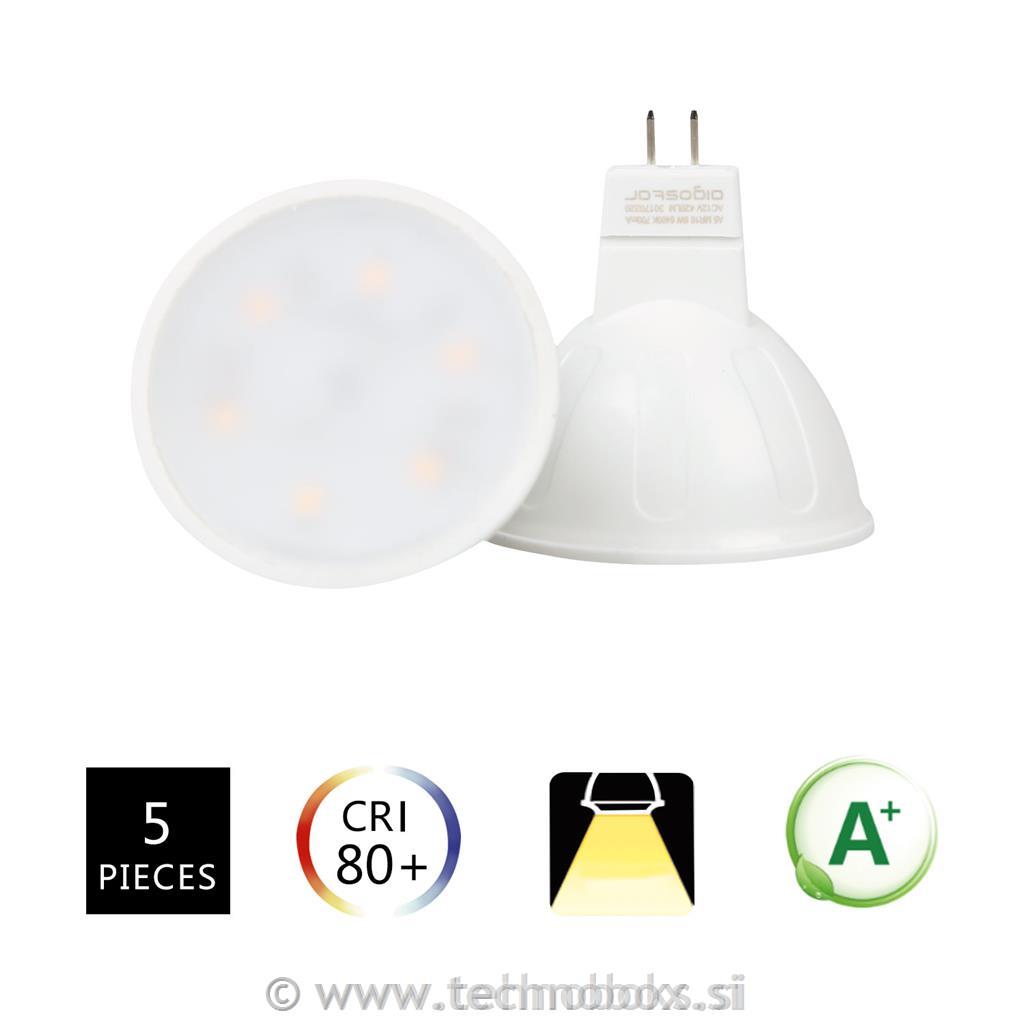 V paketu je 5 LED žarnic Mr16 4W (enakovredna klasični žarnici 30W), prihranek energije do 80%