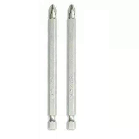PH2 nastavki za izvijač. Konice so izdelane iz jekla S2, ki ga odlikuje visoka kaljivost in odpornost na udarce. Zaradi ustrezne kemične sestave in toplotne obdelave nastavki dolgo časa ohranijo svoje visoke trdnostne lastnosti.