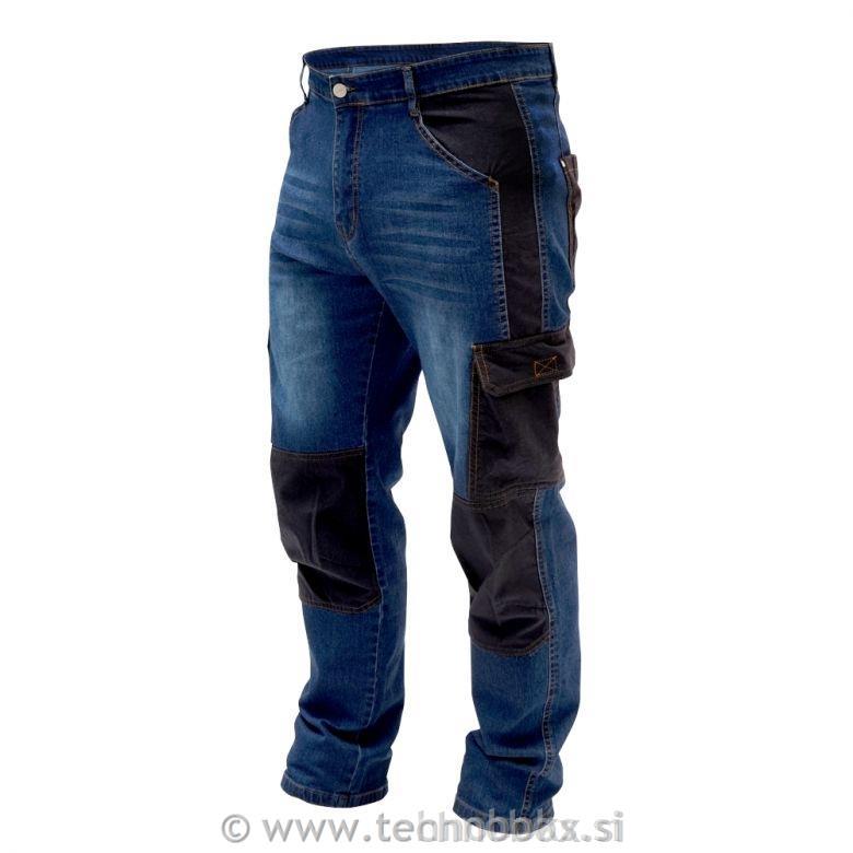 Džins hlače so narejene iz mešanice bombaža, poliestra in elastana. Tak material zagotavlja dobro kroženje zraka in svobodo gibanja. Ojačitve na kolenih preprečujejo trganje in odrgnine tudi pri pogostejšem delu v opori.