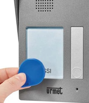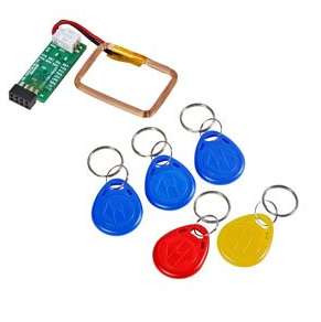 Čitalec ključev s kompletom 5 barvnih ključev: rumena za programiranje uporabniških ključev, rdeča za brisanje uporabniških ključev in trije modri uporabniški ključi.
