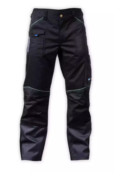 Zaščitne hlače PREMIUM LINE so izdelane iz mešanice poliestra in bombaža. Takšen material z težo 240 g/m2 zagotavlja visoko odpornost proti obrabi in mehanskim poškodbam. Dodatne ojačitve na kolenih iz Oxford materiala. Ima funkcionalne žepe, vključno z žepom za pametni telefon. Za povečanje trdnosti hlač so bili uporabljeni trojni šivi. Zahvaljujoč elastičnemu pasu so hlače enostavne za prileganje in udobne med uporabo. Všiti odsevni elementi za večjo varnost. Popoln za težja gradbena in obnovitvena dela.