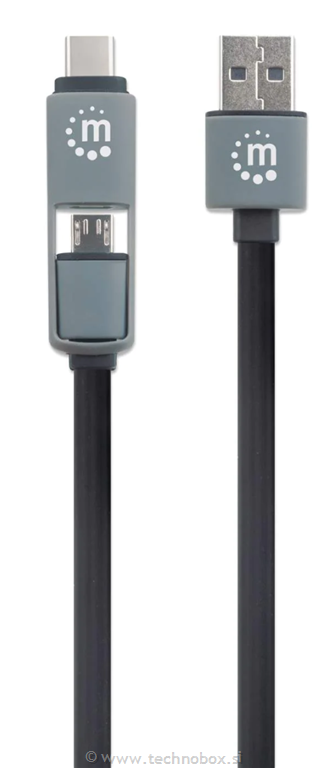 Vključuje polnilni kabel 2 v 1 z vtiči USB-A do Micro-B in USB-C