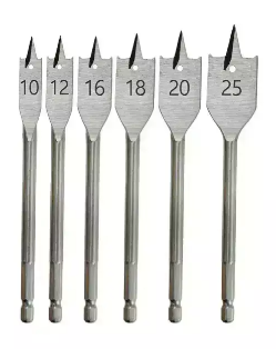 Komplet ploščatih svedrov za vrtanje v vse vrste lesa. Svedre je mogoče podaljšati za 300 mm z uporabo priporočenega podaljška za ploščate svedre DEDRA WDA0300.