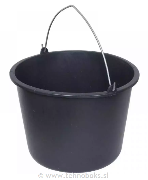 Gradbeno vedro za mešanje malt, lepil ali ometov. Vedro iz umetne mase, ki ga odlikuje visoka odpornost na razpoke in enostavno čiščenje. V notranjosti vedra je tehtnica, ki vam pomaga izbrati pravo razmerje mešanih materialov.