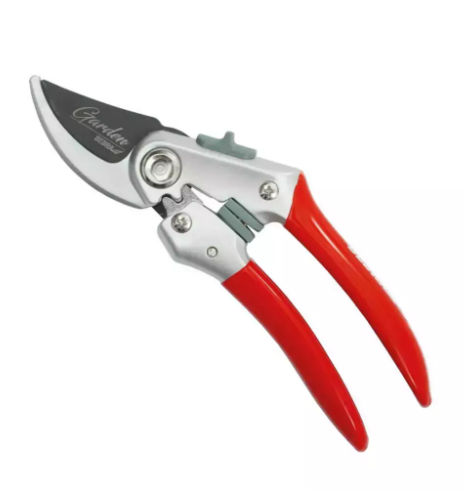 Škarje 80A002 so zasnovane za rezanje, obrezovanje živih poganjkov, vej ali cvetov. Jekleno rezilo SK5 je prevlečeno s teflonsko prevleko, ki preprečuje lepljenje in ščiti rezilo pred korozijo. Obrezovalne škarje lahko obdelujejo poganjke s premerom do 20 mm. Ročaj iz aluminija je profiliran in prevlečen z nedrsečim materialom. Odklepanje in zaklepanje rezila je možno zahvaljujoč ključavnici, ki je enostavna za uporabo. Trdna vzmet izboljša gladko delovanje vrtnih škarij. Dolžina 200 mm.