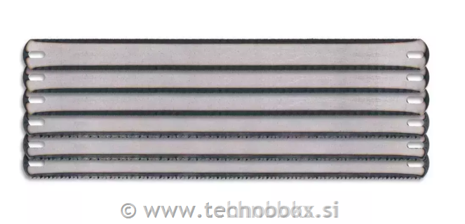 Komplet 72 dvostranskih žaginih listov, namenjenih za rezanje lesa in kovine. Žagini listi ustrezajo vsem držalom, ki so na voljo na trgu.